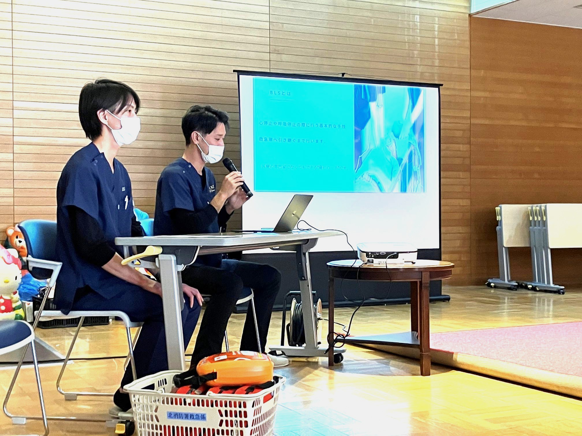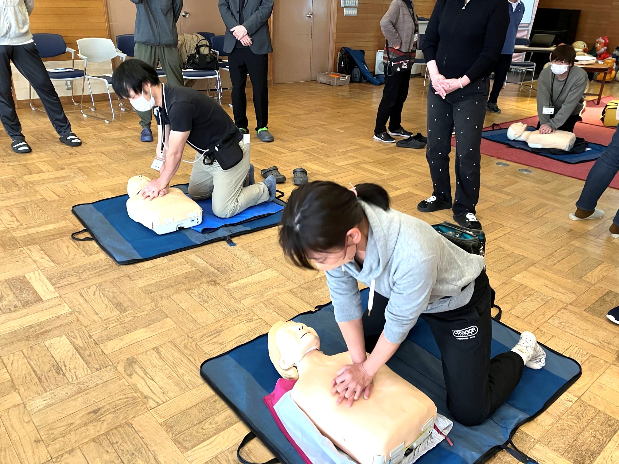 内容は①心肺蘇生講習、②窒息時のハイムリック講習、③外傷講習の3点です。