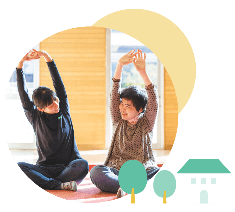 ご利用者一人ひとりの「ありのまま」と「自分らしさ」を大切にすることを基本とし、安心感を持った生活をしていただけるよう、一人ひとりの思いに寄り添う支援(心のケア)を心掛け、「いい関係」をつくっていけるよう支援しています。
