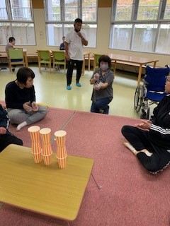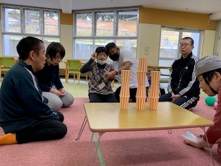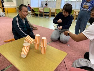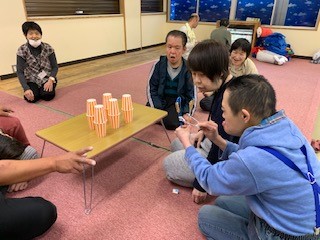 皆さん真剣に!そしてコップが倒れたら拍手喝采! 楽しいひと時でした( ´∀` )