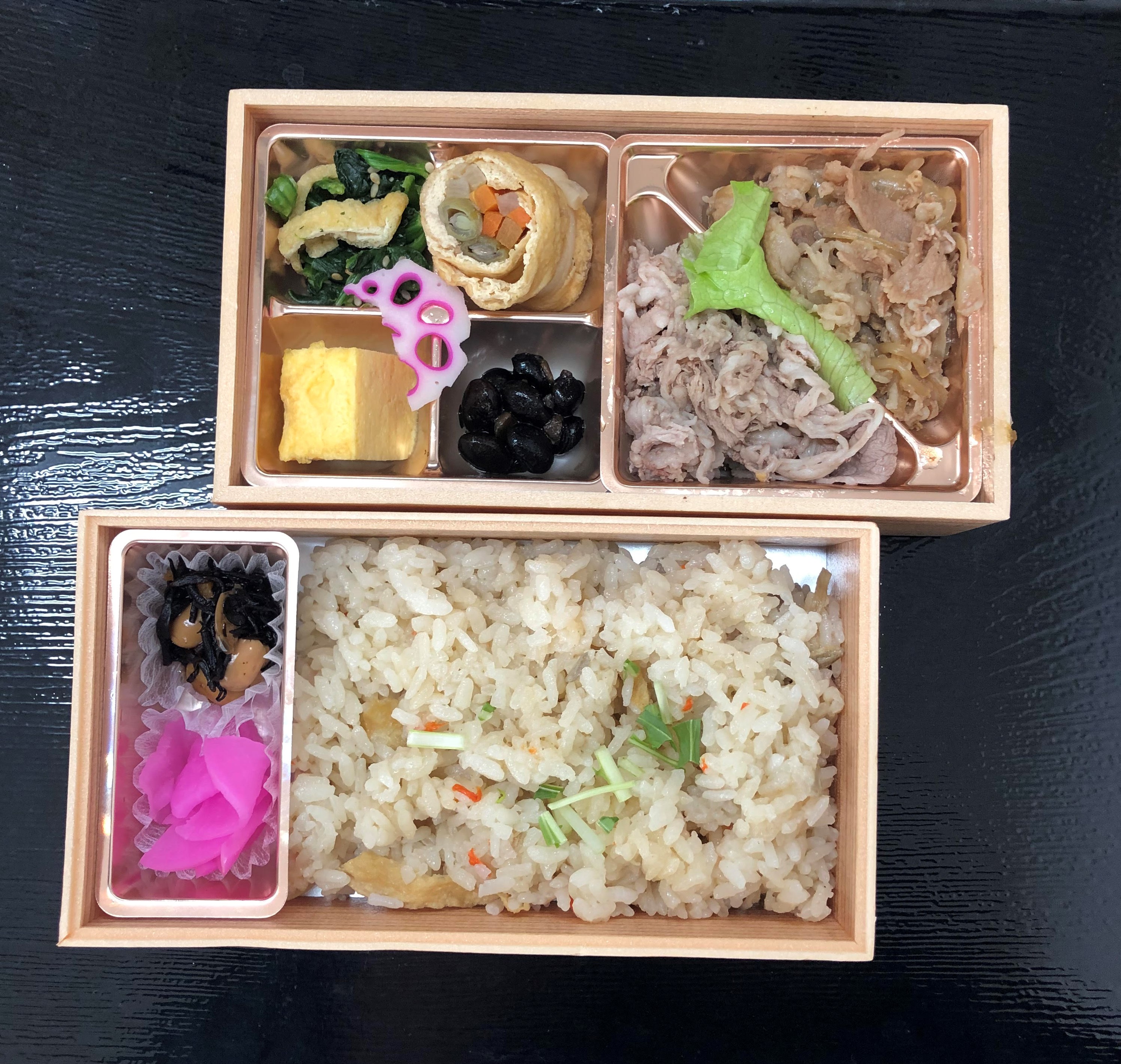 昼食は春を彩る行楽弁当、牛すきやき&牛しゃぶの豪華版!