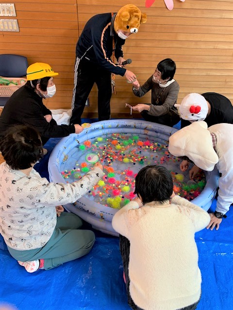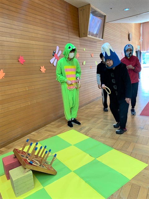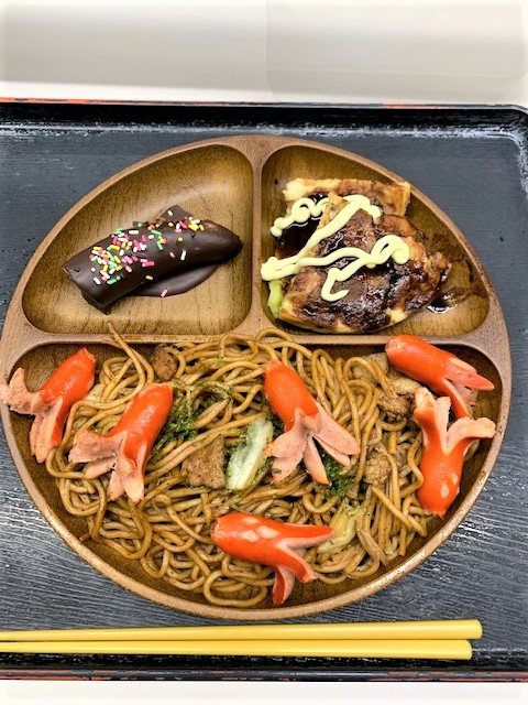 ご利用者と職員のみの施設内行事となりましたが、ベビーカステラを食べて、スーパーボールすくいや輪投げを楽しみ、昼食は焼きそば・お好み焼き・タコさんウインナー・チョコバナナとお祭りの雰囲気を充分に満喫しました(^^♪