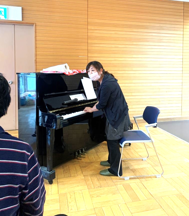 今回より兵庫県音楽療法士会の小笠原佳代子先生に来ていただき、ピアノ伴奏に合わせたあいさつをはじめ、馴染みの歌を楽器を使用しながら歌ったり踊ったり??・・皆さまとても良い表情をしていました( ´∀` )