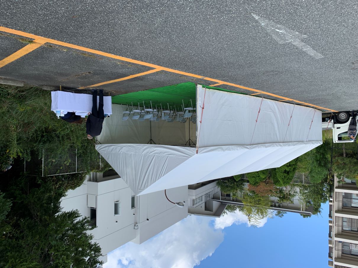 当日は地域の自治会長をはじめ、りそな銀行関係者、建築関係者、設計関係者、神戸栄光教会関係者、施設関係者等総勢40名が参加し、佐藤成美牧師の司式のもと無事に執り行われました。