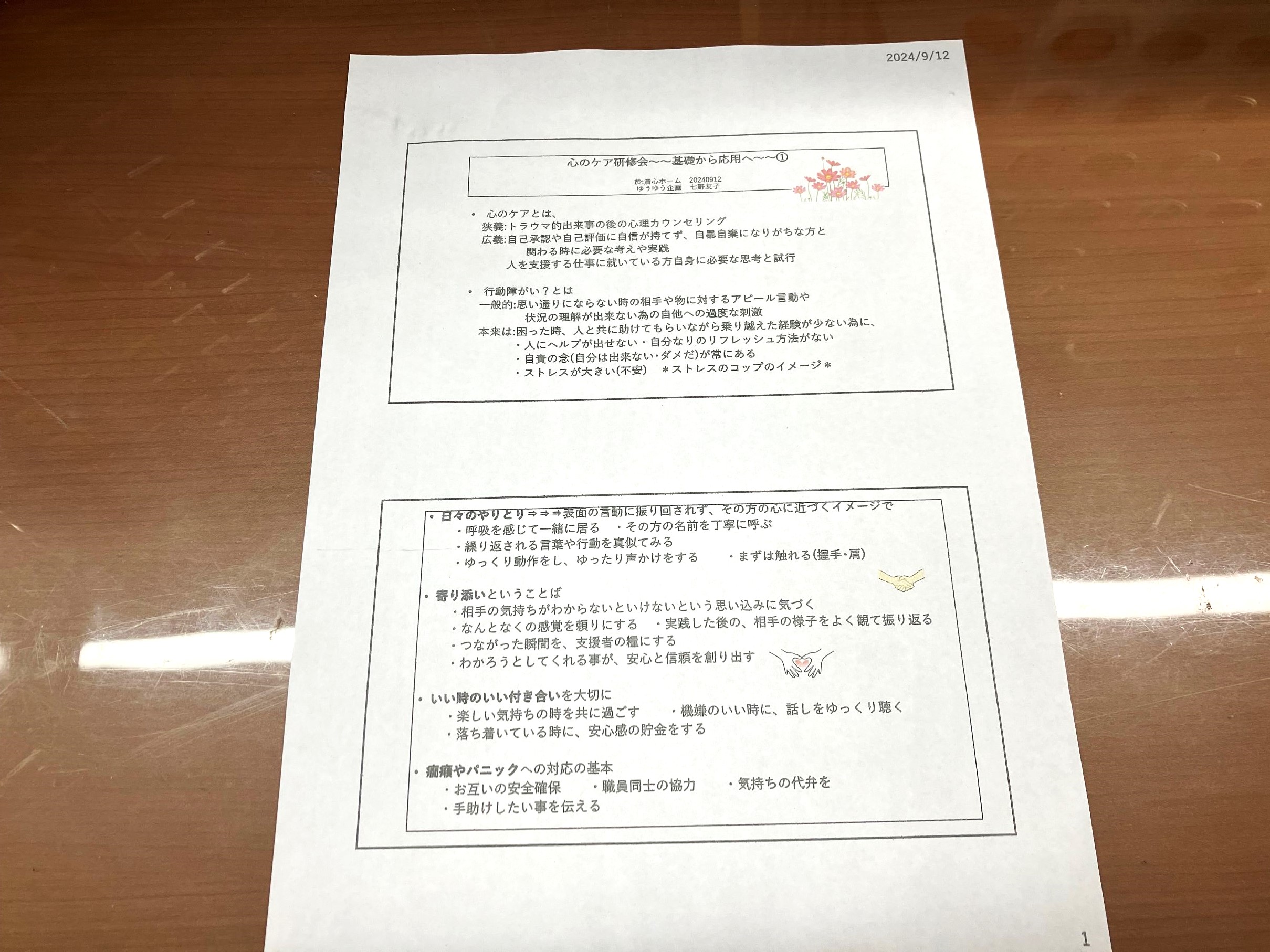先週9月12日(金)に毎年恒例の「心のケア」研修を行いました。